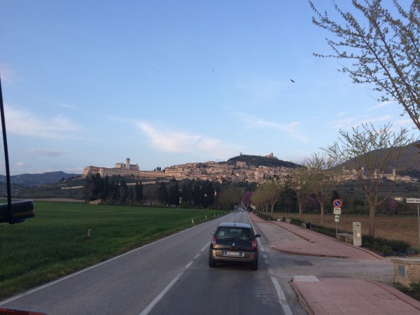 eccoci ormai in vista di Assisi: vi portiamo tutti con noi