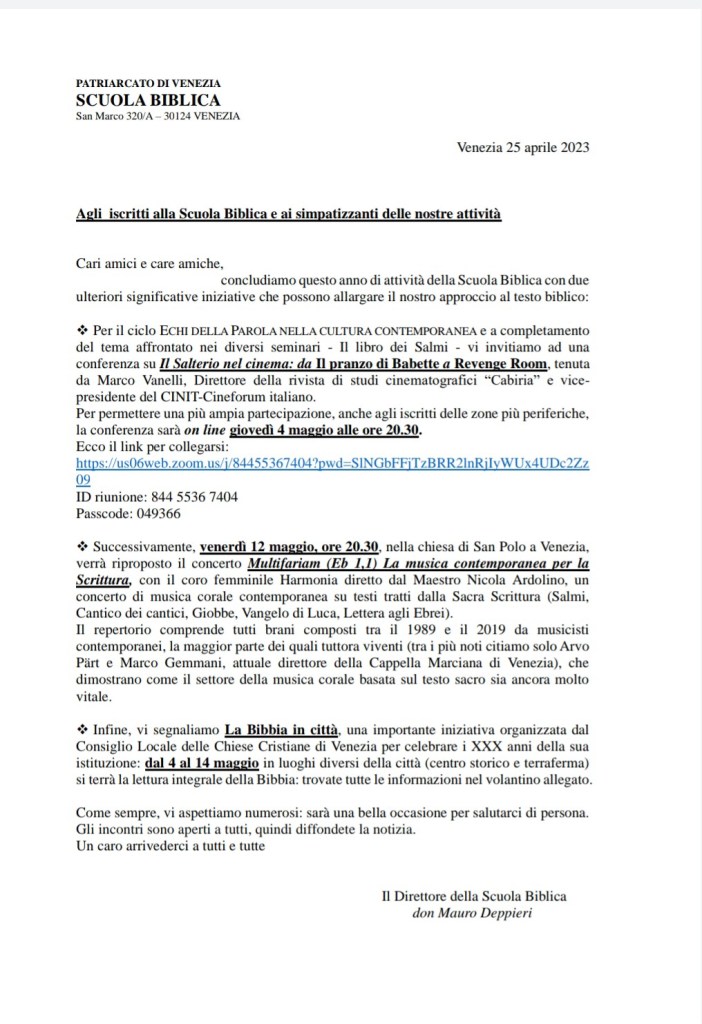 Patriarcato di Venezia SCUOLA BIBLICA 320/A – San Marco
