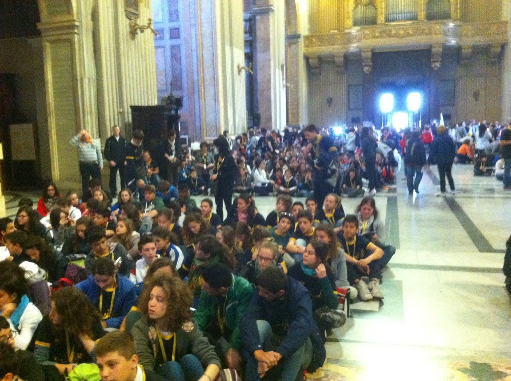 Eccoci alla fine di un’altra giornata vissuta intensamente. Questa mattina una visita “toccante” alle catacombe e abbiamo celebrato la messa e rinnovato la nostra fede. Poi visita a San Pietro: coda lunga ma ne valeva la pena! Poi partenza per un tour di Roma: abbiamo consumato un paio di scarpe ma come si poteva non approfittare!. Domani il momento più bello e importante: la messa con il Patriarca e tutti i ragazzi della nostra diocesi. E alla fine il regina coeli con papa Francesco